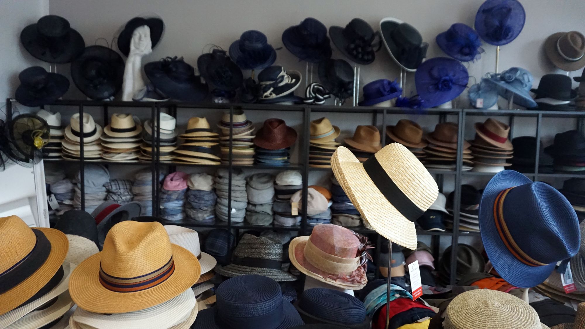 Weil aber diese Anfertigungen und Reparaturen Zeit erfordern und zudem ihren Preis haben, führt Modista auch „fertige“ Modelle ausgewählter Firmen im Sortiment. Schließlich haben Hüte neben dekorativen ja auch praktisch so einigen Nutzen, zum Beispiel den Schutz vor Sonne. So findet die Friedhofsgärtnerin ebenso den Weg hierher wie der vom Hautarzt ermahnte Senior mit lichter werdender Frisur.