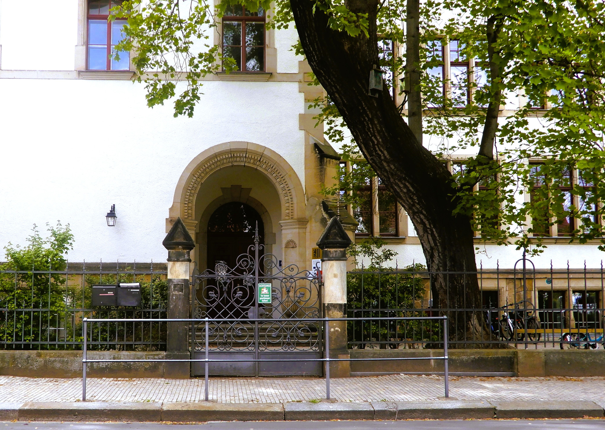 Am 15. März 1899 weihte die Gemeinde Trachau an der im gleichen Jahr benannten Germanenstraße (ab 1904 Böttgerstraße) ihr zweites Schulhaus ein. Im Stile der Deutschen Renaissance vom Dresdner Architekten Gustav Reinhold Hänichen entworfen, war es von den Trachauer Baumeistern Carl Wilhelm Roßberg und Max Hugo Ullrich in elf Monaten errichtet worden.