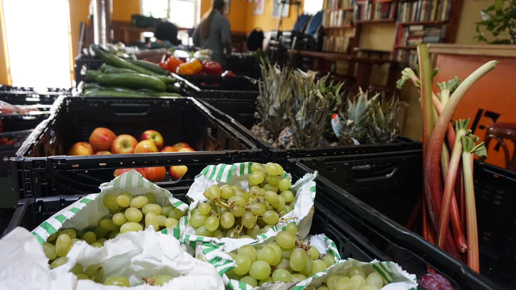 Die war lange Jahre einmal wöchentlich im Haus zu Gast, ist aber nun auf die Hechtstraße umgezogen, wo sie ihre Öffnungzeiten erweitern konnte und jetzt von Montag bis Samstag (außer Mittwoch) Lebensmittel ausgibt. Wie die Tafel hat auch Foodsharing als Bewegung das Ziel, das Wegwerfen von Lebensmitteln zu verhindern, indem sie dort, wo sie übrig sind, abgeholt werden, um sie an Stellen, wo sie gebraucht werden, zu verteilen.