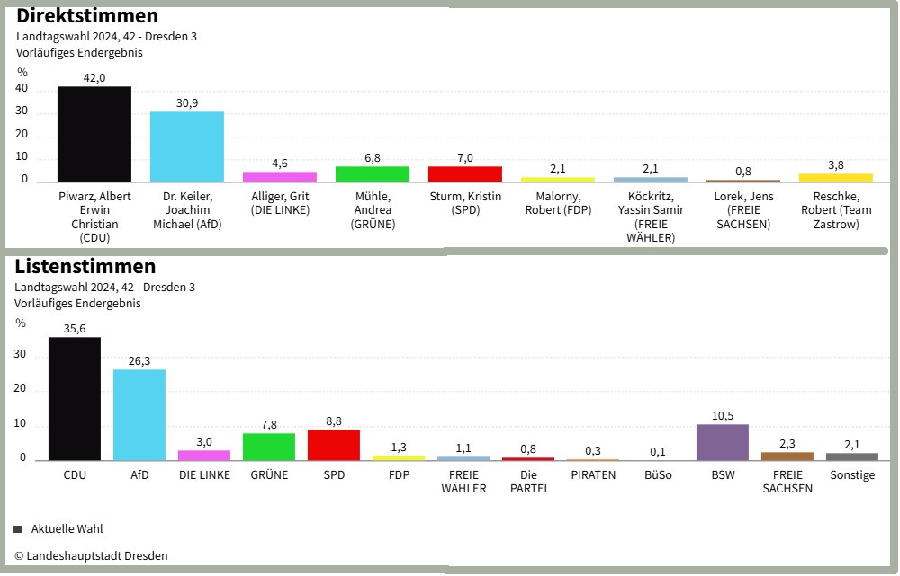 Landtagswahl 2024: Ergebnisse im Wahlkreis 42, Dresden 3. Quelle: Landeshauptstadt Dresden