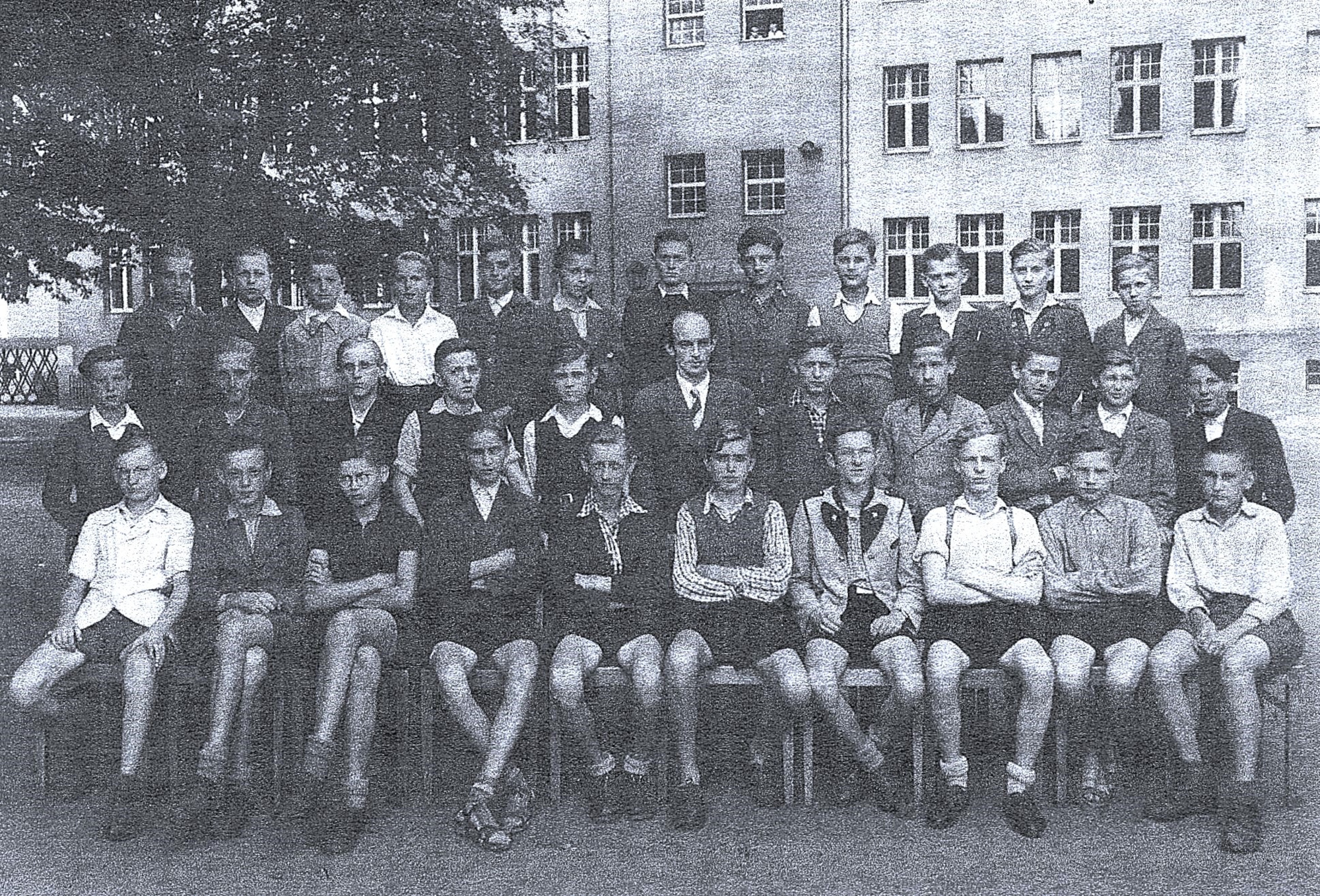„In der Schule begann mitten im Sommer wieder der Unterricht. ‚Die Ferien sind abgeschafft‘, erklärte jemand naseweis. ‚Auch die Lehrer werden abgeschafft‘. Von den früheren Lehrern erschien auch keiner mehr. […] Es gab neue Unterrichtsfächer, neue Schulbücher und junge Neulehrer, manche nur fünf, sechs Jahre älter als wir. ‚Ich gehe selbst noch zur Schule‘, sagte unser neuer Klassenlehrer.“