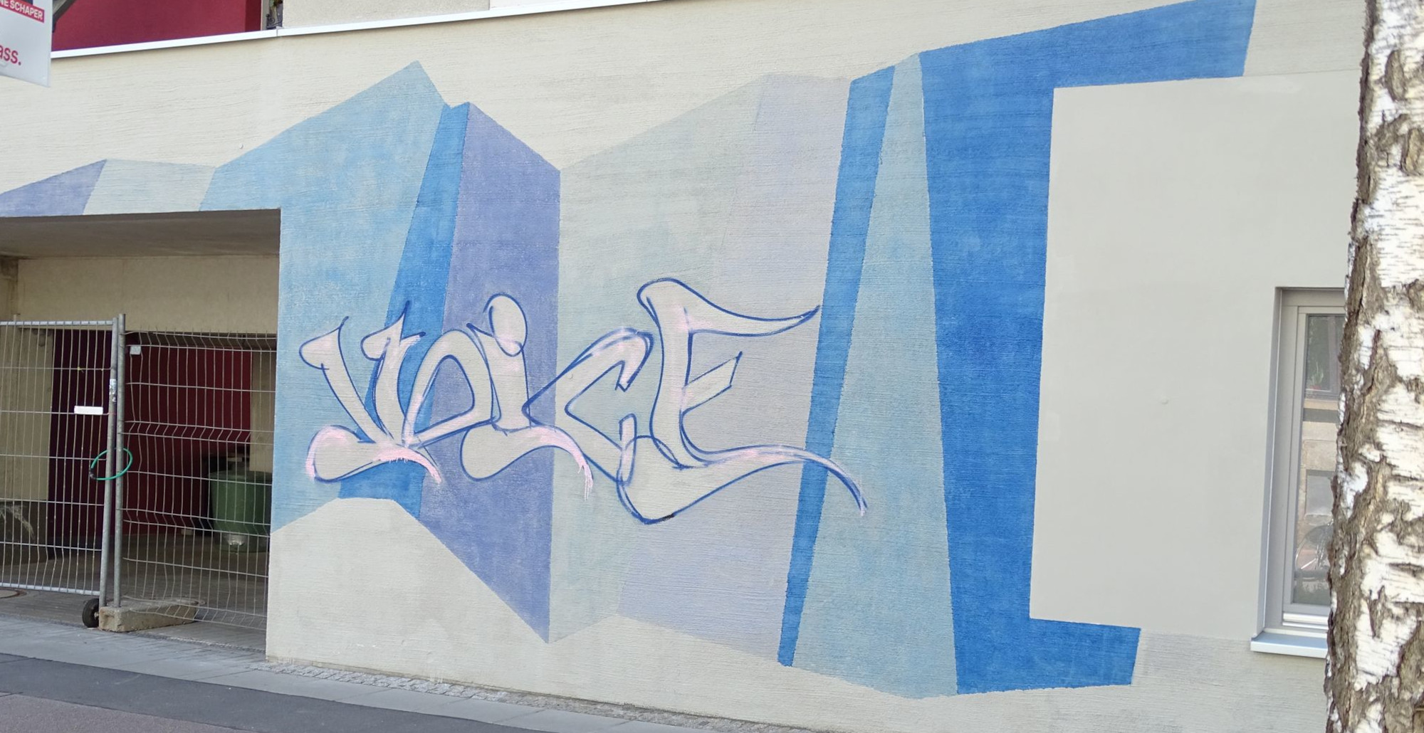 „Miteinander malen, statt gegeneinander“. Diese Idee hat der Künstler Henning Haupt bei der Neugestaltung der Fassade des Mehrfamilienhauses in der
