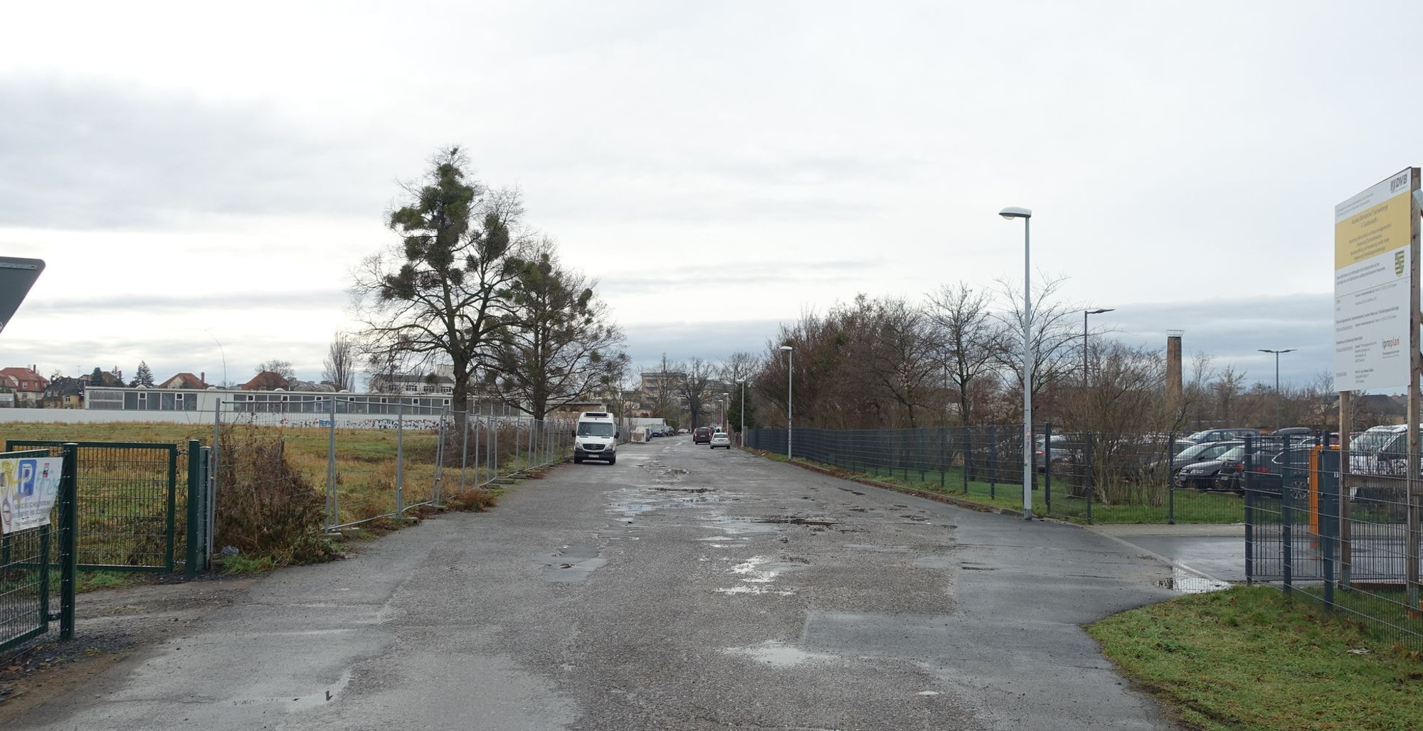 Die Neuländer Straße ist die nördlichste Straße im Stadtteil Trachau. Auf der südlichen Seite gibt es Einfamilienhäuser, daneben ein paar