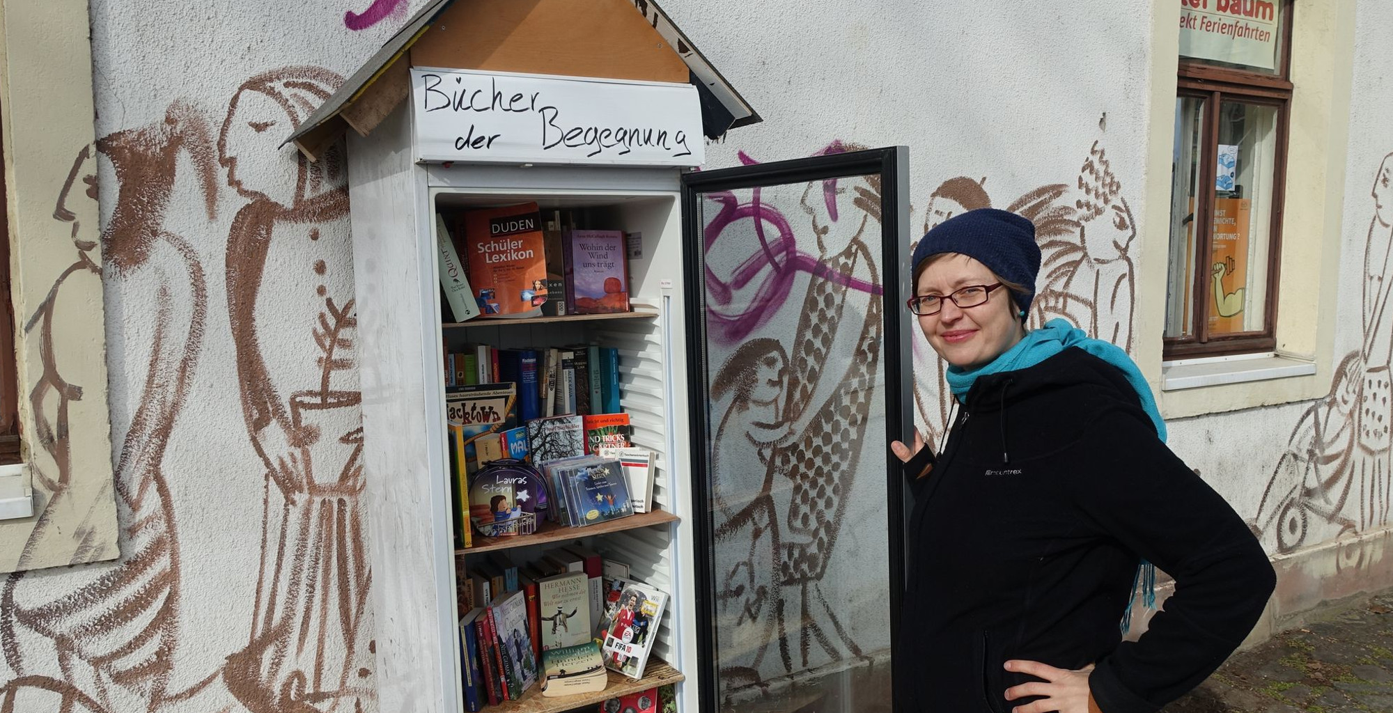 Am Konkordienplatz ist heute ein Büchertauschschrank eröffnet worden. Die ersten Bücher zum Tauschen stehen bereits in den Regalen des etwas