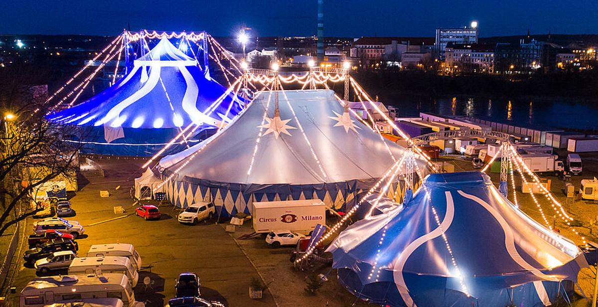 Wegen Sturmwarnungen bis Windstärke 9 muss der Dresdner Weihnachtszirkus seine Nachmittags-Show um 14.00 Uhr und die Abend-Show um 18.30 Uhr