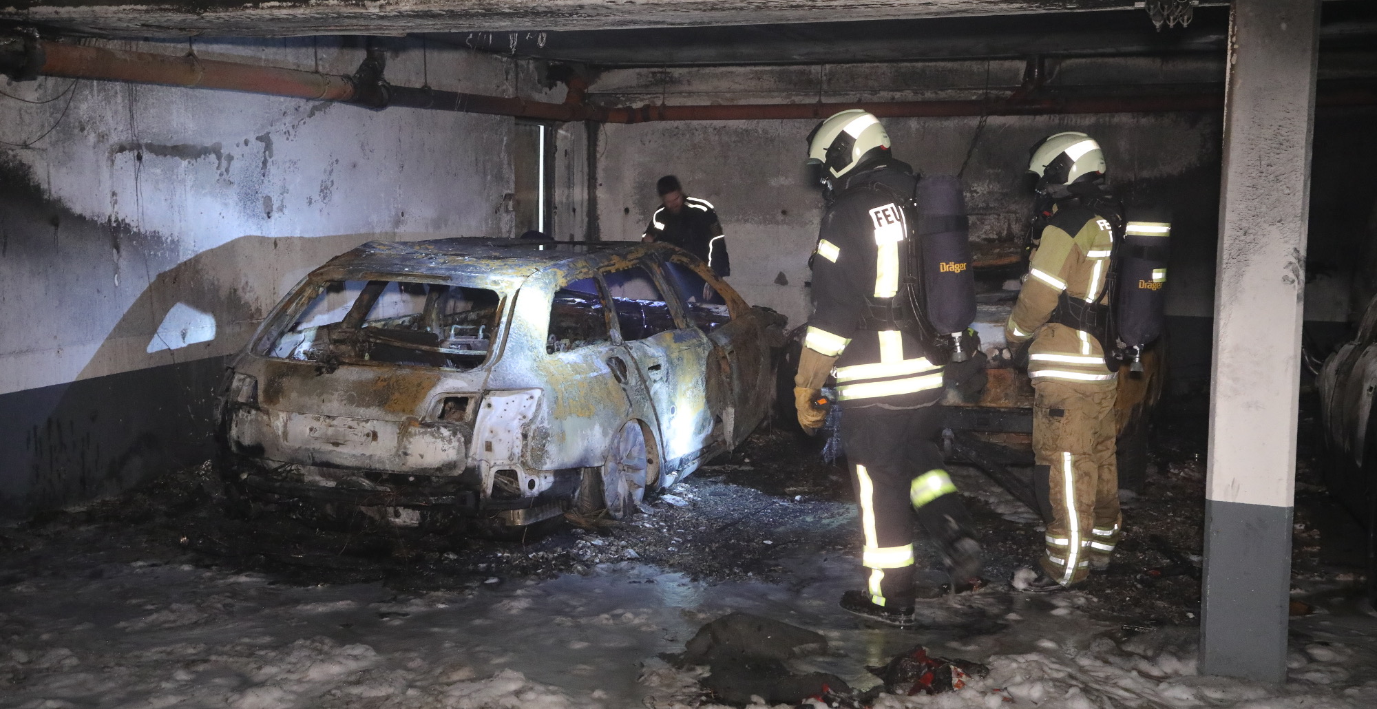 Der in einer Tiefgarage in der Kötzschenbroder Straße ausgebrannte Audi A6 Avant war das Fluchtfahrzeug der Einbrecher in das Grüne