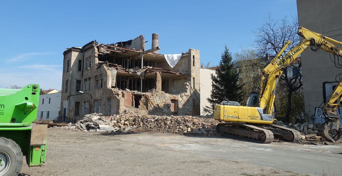 Auf dem Grundstück an der Leipziger Straße 70 haben Abrissarbeiten an einem leerstehenden Gebäude begonnen. Hier soll ein Mehrfamilienhaus gebaut