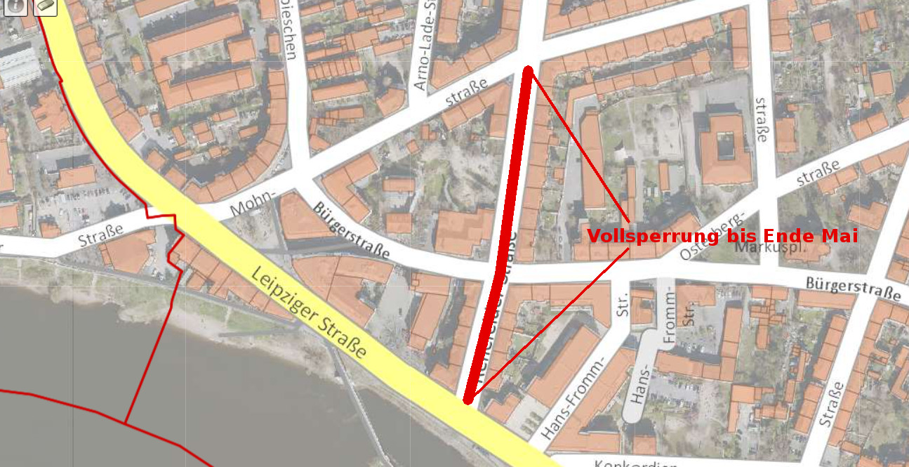 Ab Montag, 31. Januar, wird die Rehefelder Straße im Abschnitt zwischen der Leipziger Straße und der Mohnstraße voll gesperrt. Die