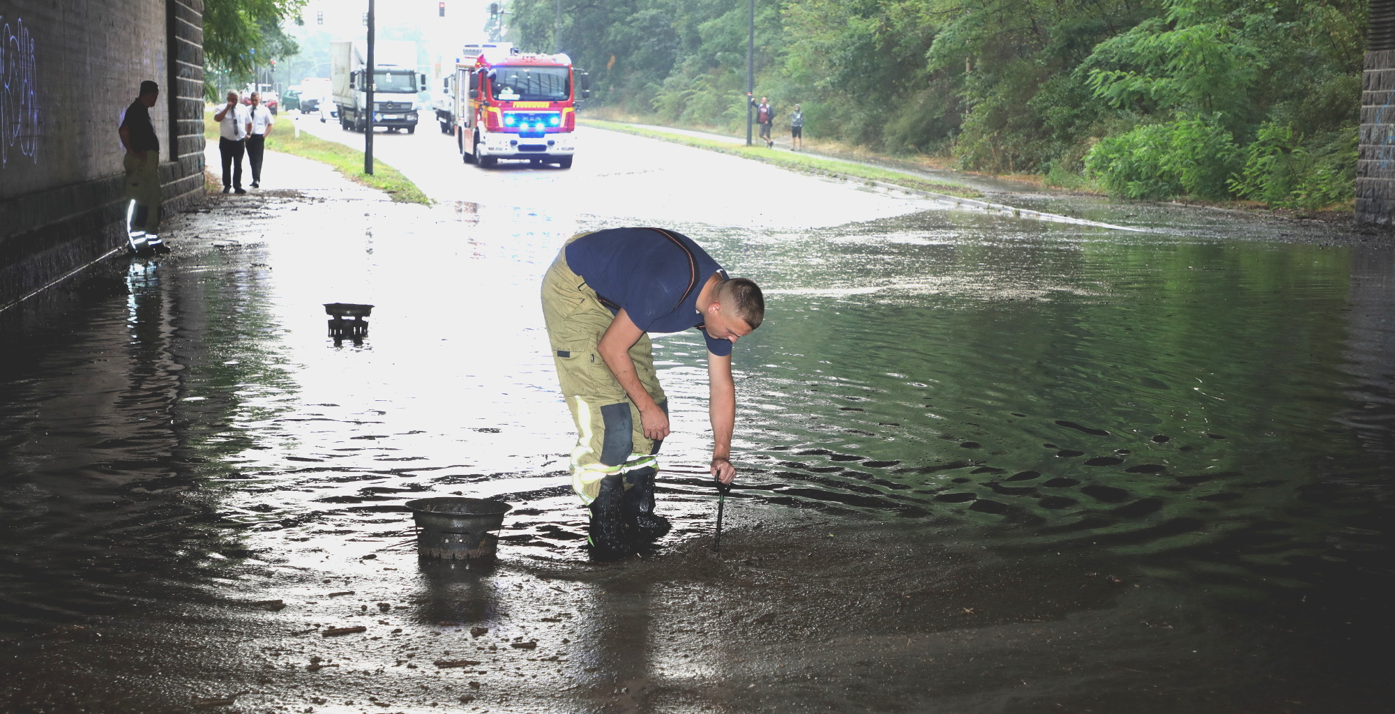 Starke Regenfälle haben heute in Dresden für einige Einsätze der Feuerwehr gesorgt. So war auf der Moritzburger Landstraße die Unterführung