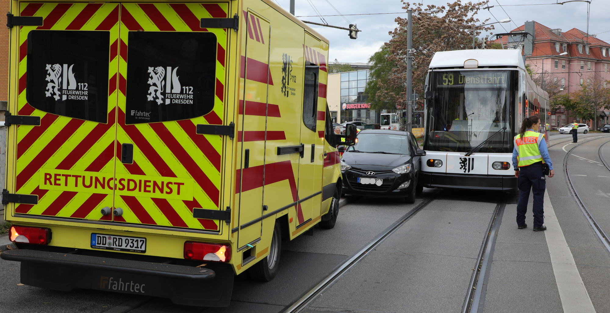 Heute Mittag gegen 11.45 Uhr kam es in der Leipziger Straße stadteinwärts, kurz vor der Haltestelle Altpieschen, zu einem Verkehrsunfall.
