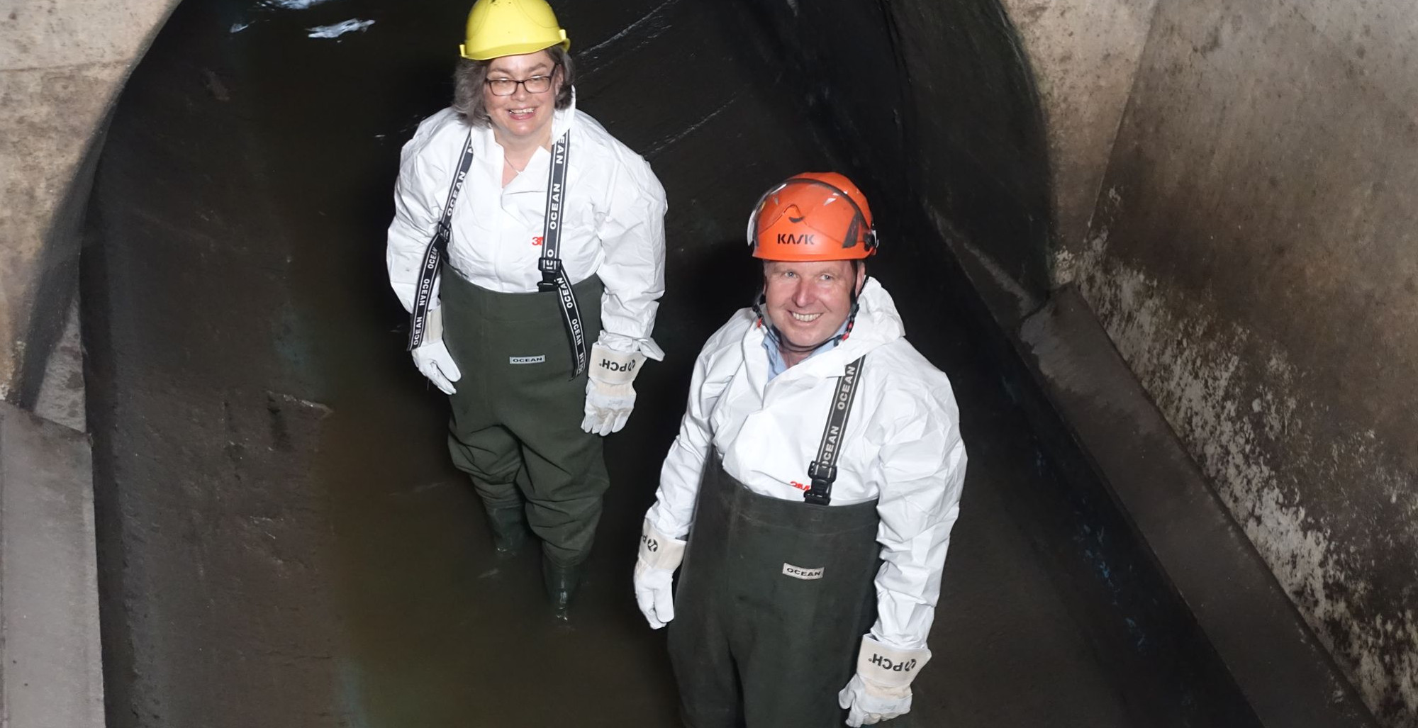 In weißen Schutzanzügen und grünen Wathosen überzeugten sich heute Umweltbürgermeisterin Eva Jähnigen (Grüne) und Christian Wintrich, Leiter des Stadtbezirksamtes Pieschen,
