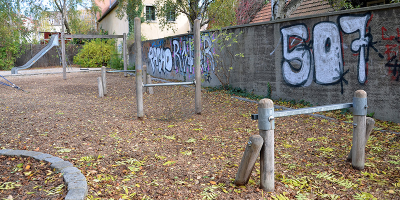 Lange Gesichter bei allen Kindern, die sich derzeit auf dem Hüpfband des Spielplatzes Altpieschen austoben wollen: Seit reichlich zwei Monaten